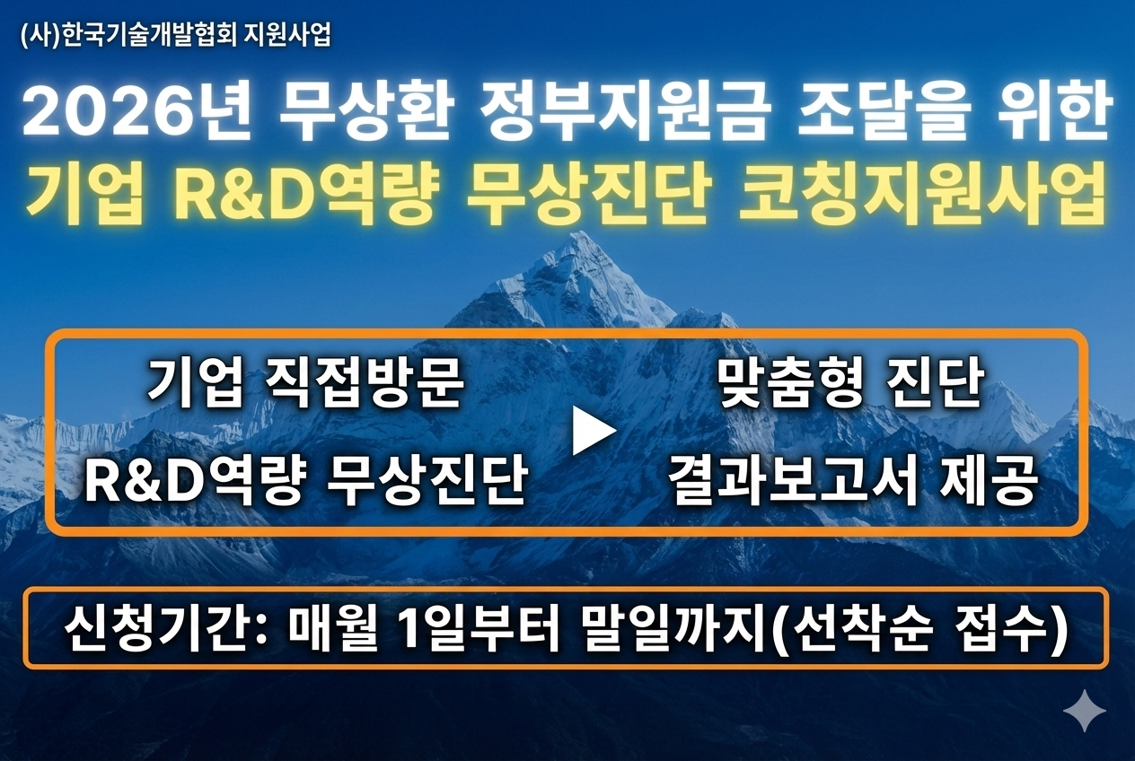 한국기술개발협회, 2026년도 무상환 정부지원금 조달을 위한 기업R&D역량 무상진단 코칭지원사업 공고