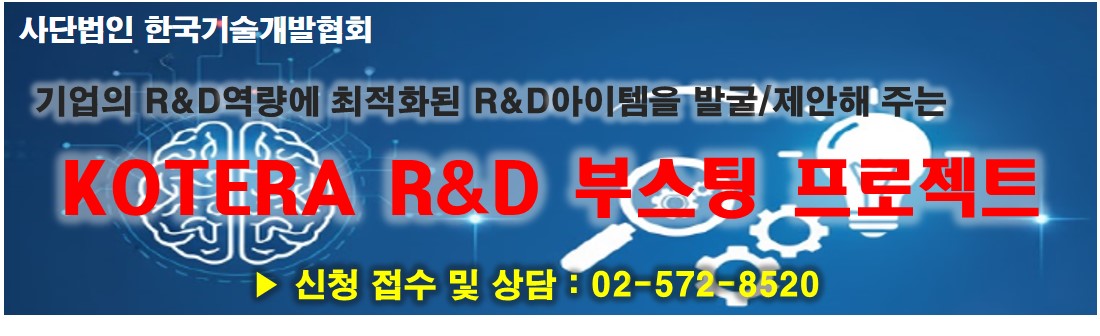 국내 최대 정책자금 커뮤니티 정실미 다음카페를 공식 후원하는 비영리민간단체 (사)한국기술개발협회(KOTERA)가 2026년도 R&D 예산 35조 3천억 원 시대를 맞아 기업들의 R&D 과제 성공 첫 단계를 돕기 위해 'R&D과제 부스팅 프로젝트'를 11월부터 상시 시행한다고 6일 밝혔다.