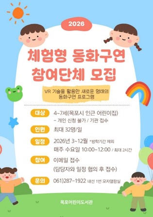 목포어린이도서관, 3월부터 체험형 동화구연 프로그램 운영