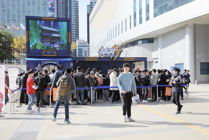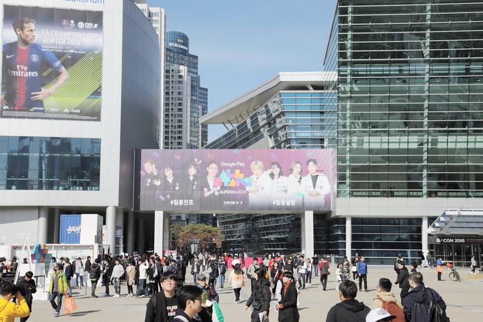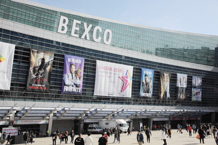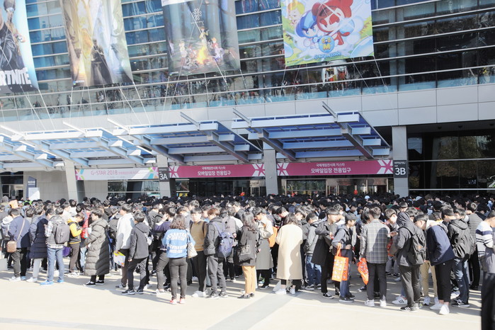 11월 15일(목)에 지스타2018이 열리는 벡스코의 야외전시장에서 관람객들의 체험 및 이벤트, 전시되는 풍경들을 찾아가봤다.