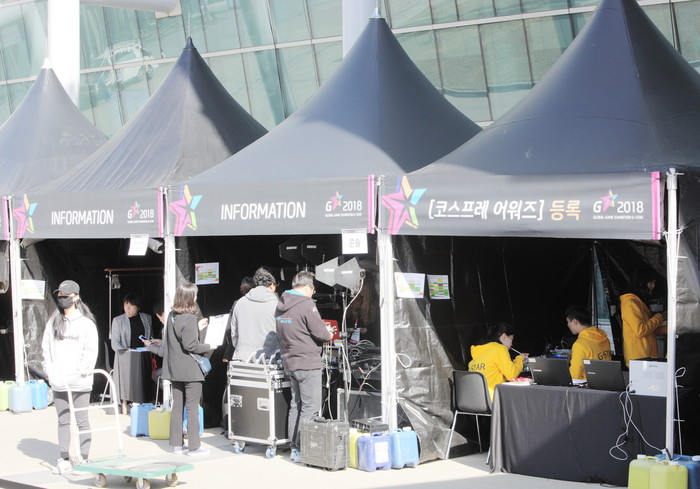 BEXCO 제1전시장 입구 야외무대에는 ‘지스타 코스프레 어워즈’가 진행된다.