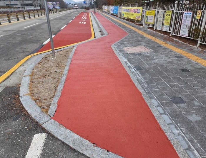 원주시는 최근 고향사랑기금 1억 2천만 원을 투입해 원주여고와 섬강중·고에 통학차량 승하차구역을 조성했다.