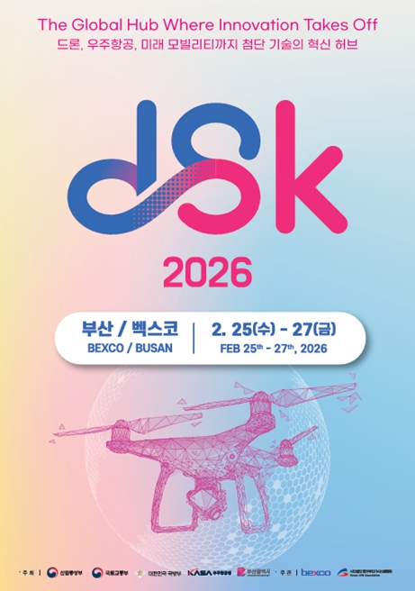[파이낸셜경제=박영진 기자] 부산시는 오는 2월 25일부터 27일까지 3일간 벡스코에서 아시아 최대 드론 전시회 및 콘퍼런스인 'DSK(드론쇼코리아) 2026'를 개최한다고 밝혔다.