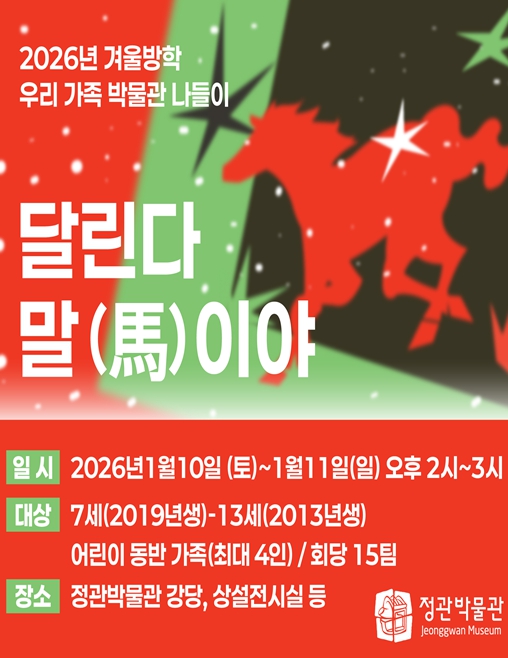 유현 정관박물관장은 “말은 인간의 활동 영역을 획기적으로 넓혀준 소중한 동반자이자 역사적 상징물”이라며, “병오년 새해를 맞아 온 가족이 박물관에서 우리 역사 속 말의 의미를 되새기며 유익한 겨울방학을 보내시길 바란다”라고 전했다.