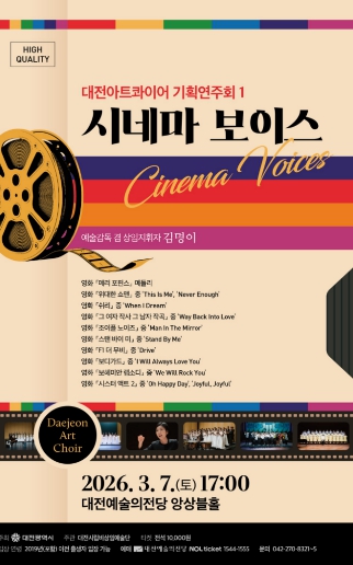 [파이낸셜경제=김영란 기자] 대전아트콰이어는 3월 7일 오후 5시 대전예술의전당 앙상블홀에서 기획연주회1 ‘시네마 보이스’를 무대에 올린다.