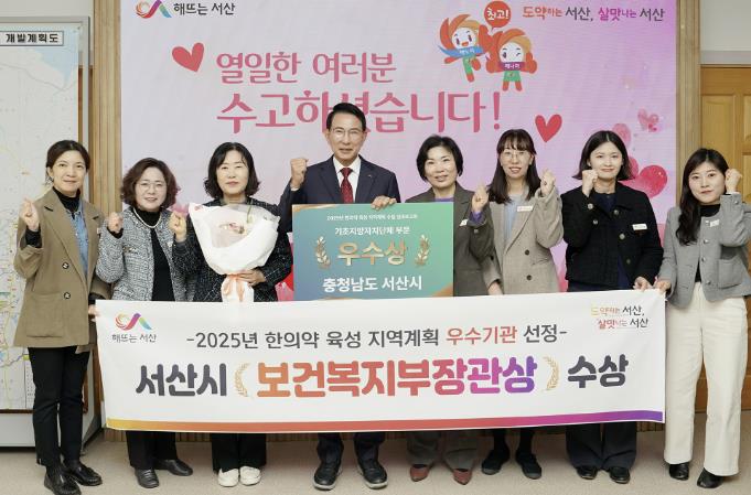 [파이낸셜경제=김영란 기자] 충남 서산시는 보건복지부가 실시한 ‘2025년 한의약 육성 지역계획 수립 성과보고회’에서 우수기관으로 선정돼 보건복지부 장관상을 받았다고 밝혔다.
