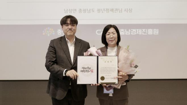 | ▲ 서산시가 지난 16일 천안 신라스테이에서 열린 2025년 청년일자리사업 평가 시상식에서 충남도지사 표창을 받았다.(오른쪽 서산시 일자리경제과 장미호 팀장) |