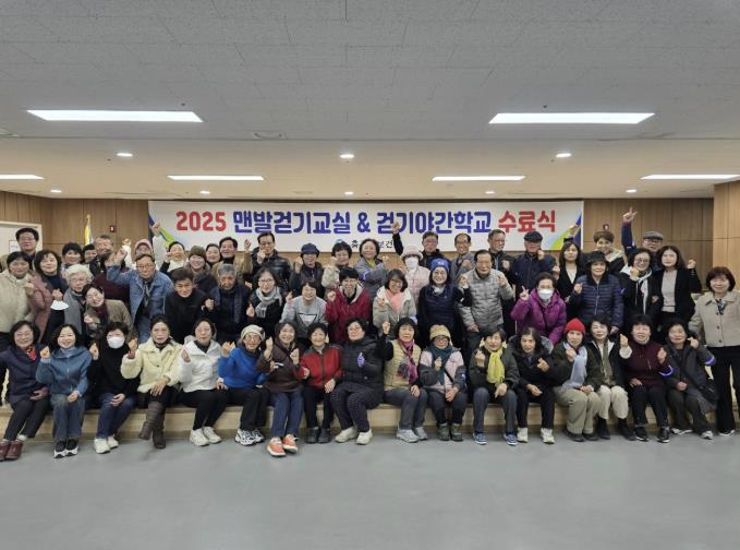 [파이낸셜경제=김기보 기자] 충주시는 시민들의 걷기 실천율 향상과 건강 증진을 위해 운영한 ‘신나는 맨발걷기 교실’과 ‘함께해요 걷기 야간학교’가 수료식을 끝으로 성황리에 마무리됐다고 밝혔다.