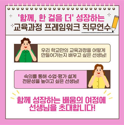 서울시교육청은 이번 직무연수를 통해 교원의 협력적 교육과정 실천 역량을 높이고, 공동체 숙의로 함께 실천하는 교육과정·수업·평가 혁신 문화를 학교 현장에 확산할 수 있을 것으로 기대하고 있다.