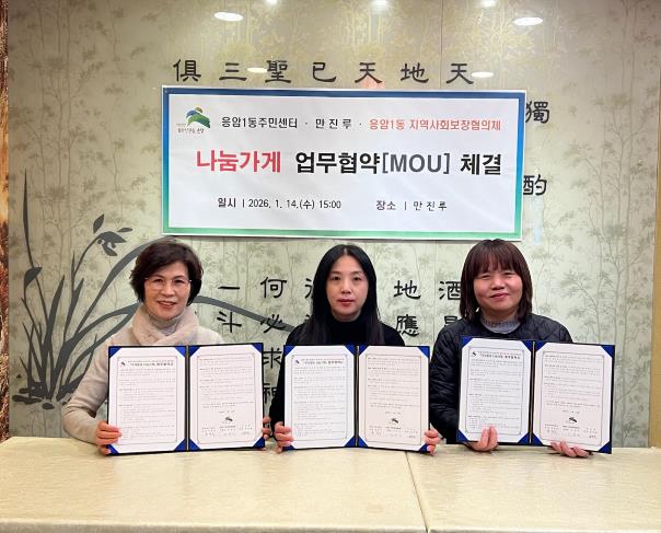 [파이낸셜경제=김예빈 기자] 서울 은평구 응암1동은 지난 14일 관내 음식점 ‘만진루’와 지역사회 나눔문화 확산을 위한 ‘우리동네 나눔가게’ 업무협약을 체결했다고 밝혔다.