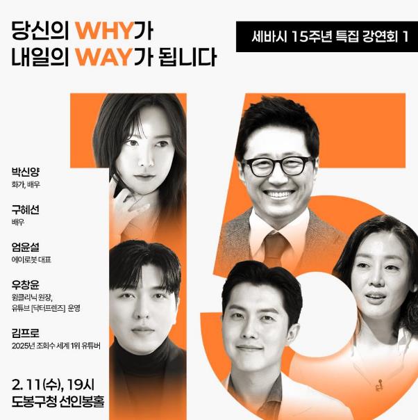 [파이낸셜경제=김예빈 기자] 서울 도봉구가 2월 11일 오후 7시 도봉구청 2층 선인봉홀에서 세바시(세상을 바꾸는 시간 15분) 15주년 특집 강연회가 열린다고 밝혔다.