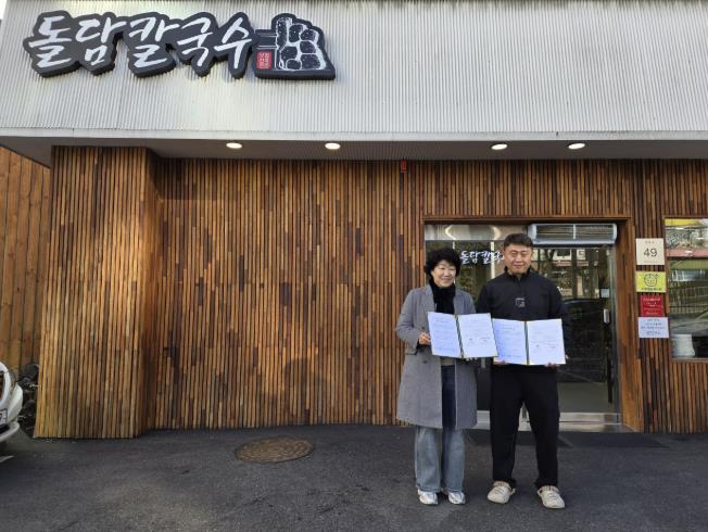 | ▲ 부산 금정구 남산동, '제주돌담칼국수 범어사점'과 영양죽 나눔사업 업무협약 체결 |