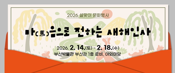 정은우 부산시립박물관장은 “병오년 새해를 맞아 전통문화의 가치를 되새기고 가족과 이웃이 함께 마음을 나눌 수 있는 명절 프로그램을 준비했다”라며, “정성껏 완성한 연하장으로 주변 분들께 새해 인사를 전하는 뜻깊은 시간이 되길 바란다”라고 전했다.