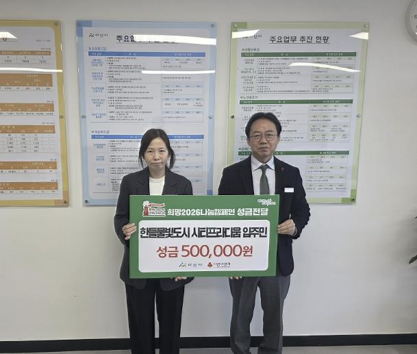 이번 성금은 입주민들이 자발적으로 뜻을 모아 마련한 것으로, 지역사회와 함께 살아가는 공동체로서의 따뜻한 마음을 전하고자 추진됐다.