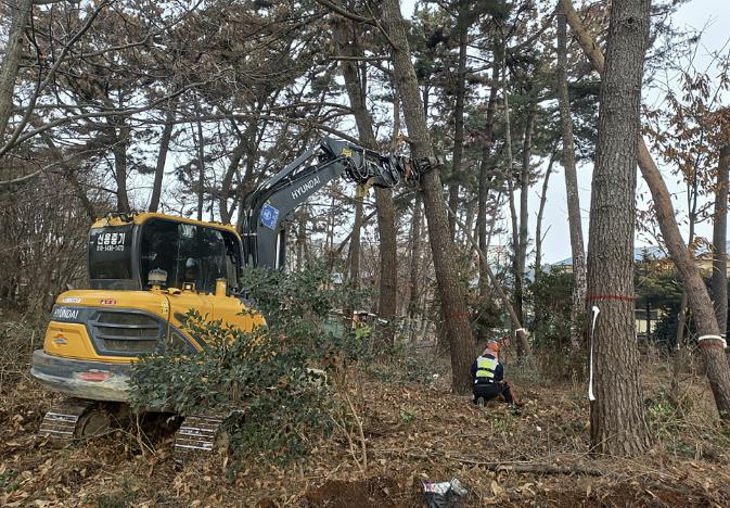 | ▲ 26년 2월 남면 소나무재선충 피해목 제거 작업하는 모습. |