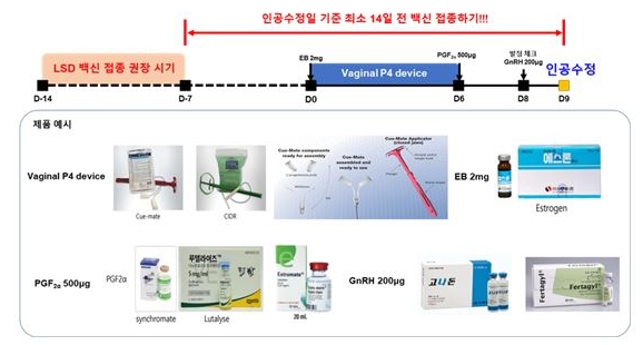 이에 따라 연구진은 럼피스킨 백신 접종 시 인공수정일 기준 최소 14일 이전에 접종하고, 반드시 목 부위 피하층에 정확한 피하접종을 시행할 것을 현장에 권고했다.