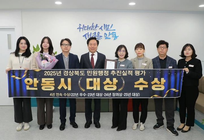 이러한 노력의 결과 안동시는 ‘2025년 경상북도 민원행정 추진실적 평가’에서 대상을 받아 2022년부터 4년 연속 수상이라는 성과를 거뒀으며, 2025년 정부혁신 우수부서 “장려상”도 수상했다.