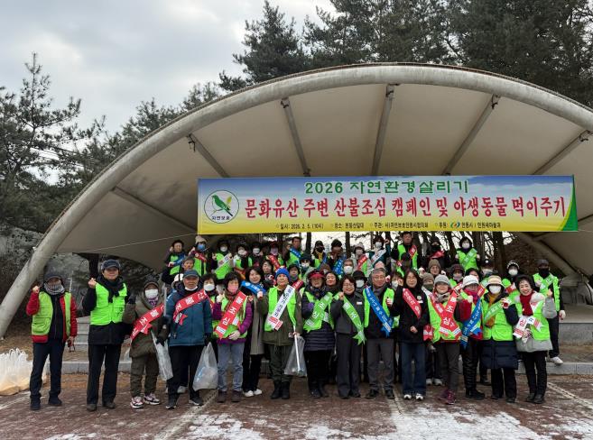 이날 행사는 천등산 등산로와 인근 마을 지역으로 나눠 산불조심 홍보 현수막 게시, 야생동물 먹이 주기, 쓰레기 수거 등 산불 예방과 산림 보호를 위한 활동을 전개하며 자연보호에 대한 시민의 적극적인 관심과 참여를 유도했다.