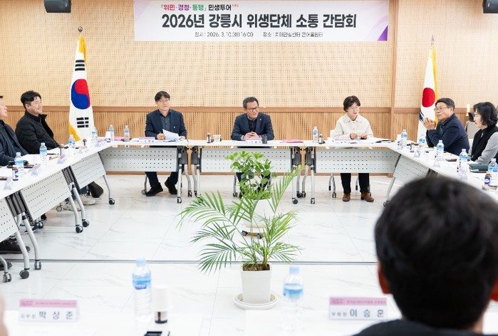 간담회에는 김홍규 강릉시장과 권혁여 보건소장을 비롯해 16개 위생단체장 및 임원 20여 명이 참석해 ▲2026년 국제행사 성공개최를 위한 위생관리 협조 요청 ▲단체별 애로사항 및 건의사항 청취 ▲위생 분야 제도 변경 및 주요 정책 방향 공유 등에 대해 논의했다.
