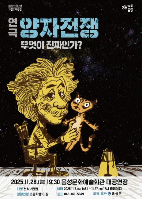 [파이낸셜경제=김기보 기자] 음성군은 오는 11월 28일 음성문화예술회관 기획공연으로 연극 '양자전쟁'을 선보인다고 밝혔다.
