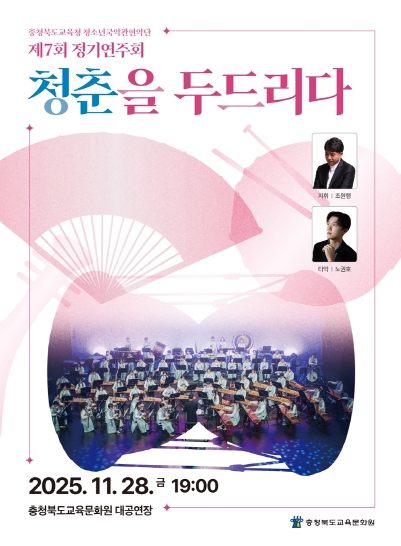 [파이낸셜경제=김기보 기자] 충청북도교육청 직속기관 교육문화원(원장 서종덕)은 28일 저녁 7시, 충북교육청 청소년국악관현악단이 교육문화원 대공연장에서 제7회 정기연주회 '청춘을 두드리다'를 열었다고 밝혔다.