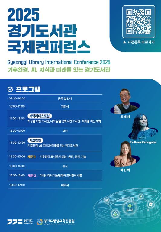 [파이낸셜경제=김영란 기자] 경기도와 경기도평생교육진흥원은 오는 23일 수원컨벤션센터 컨벤션홀3에서 ‘기후환경, AI, 지식과 미래를 잇는 도서관’을 주제로 ‘2025 경기도서관 국제콘퍼런스’를 개최한다.
