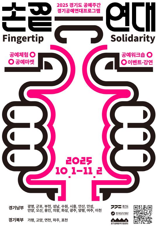 개막 프로그램인 ‘손끝연대’는 도내 공예인들이 지역과 장르를 넘어 하나의 네트워크로 모이는 프로그램이다. 총 22개 시군 175명의 공예인이 참여해 개별 공방에서 전시·체험·교육 프로그램을 운영하고, 도민이 일상에서 공예를 경험할 수 있도록 다양한 홍보 활동도 병행한다. 특히 흩어져 활동하던 공예인들을 연결해 공동의 비전을 공유하고, 장기적으로 경기도 전체 공예 생태계 강화를 모색한다는 점에서 의미가 크다.