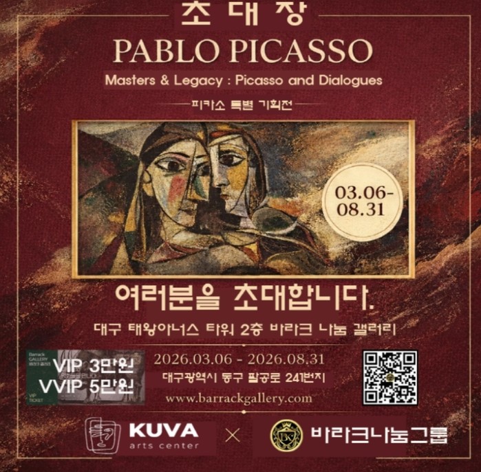[파이낸셜경제=김영란 기자] 한 도시의 전시장이 한 시대의 미술사를 온전히 담아내는 일은 결코 가벼운 과제가 아니다. 2026년 3월 6일부터 8월 31일까지 대구 동구 봉무동 바라크나눔갤러리에서 열리는 피카소 인 대구 피카소와 전설의 거장들 특별전은 이러한 학술적 무게를 정면으로 다루며 지역 문화계에 새로운 이정표를 제시한다. 이번 전시는 단순히 세계적 명화를 나열하여 선보이는 단발성 행사를 넘어 20세기 미술이 형성해온 사유의 구조를 하나의 정교한 큐레이토리얼 맥락 안에서 재구성하려는 기획이다.