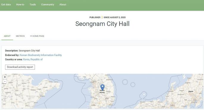 성남시는 지난 2023년 6월 2일 국립중앙과학관(GBIF 한국사무소)과 ‘생물다양성 시민과학 활성화를 위한 업무협약’을 체결한 이후 시민과 함께 조사한 식물·곤충·조류·어류 등 지역 자연자원 자료를 GBIF에 지속적으로 등록해 왔다.