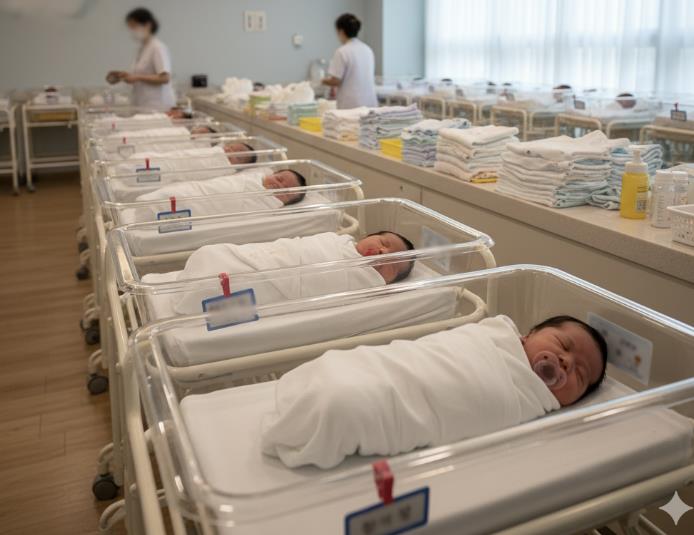 | ▲ 산후조리원에 누워있는 신생아들의 모습(AI 생성 이미지). 부천시는 올해부터 출산지원금 지급 대상을 첫째 자녀부터로 확대한다. |