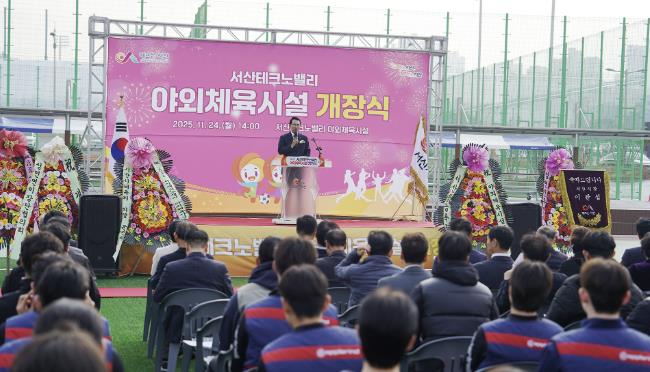 [파이낸셜경제=김영란 기자] 충남 서산시는 지난 24일 성연면 왕정리 685번지 일원에서 ‘서산테크노밸리 야외체육시설’ 개장식을 개최했다고 밝혔다.