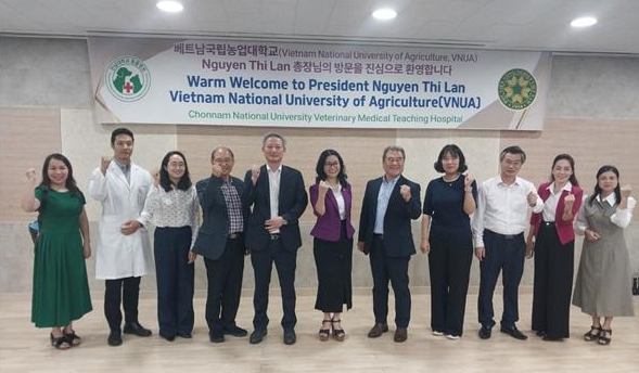 1일 전남대에 따르면 지난달 25일 전남대학교동물병원(병원장 이봉주 교수)에 베트남국립농업대학교(Vietnam National University of Agriculture, VNUA) 응우옌 티 란(Prof. Dr. Nguyen Thi Lan) 총장이 대표단과 함께 찾았다.