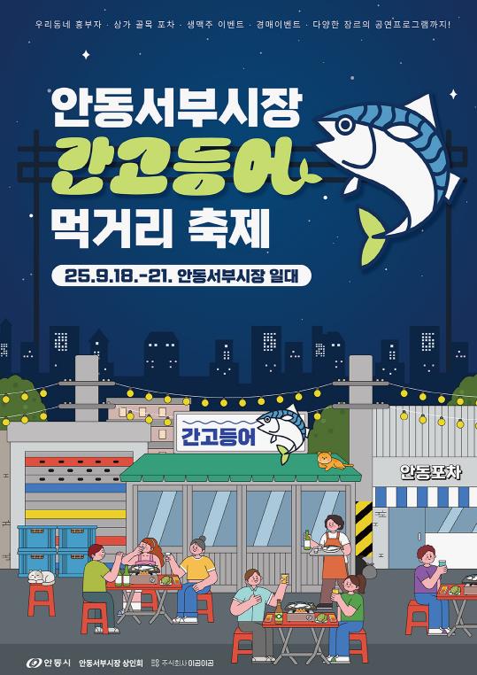 [파이낸셜경제=김지훈 기자] 안동시와 서부시장 상인회는 오는 9월 18일부터 21일까지 매일 오후 6시부터 자정까지 서부시장 일원에서 '2025 안동 서부시장 간고등어 먹거리 축제'를 개최한다.