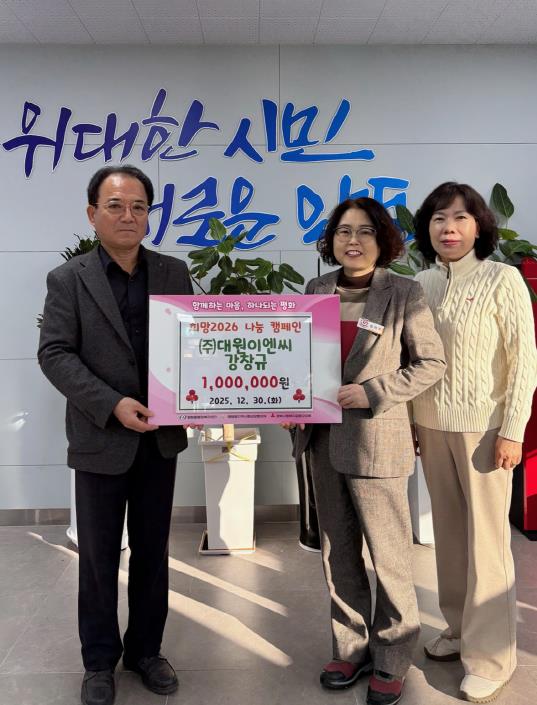 강창규 ㈜ 대원이엔씨 대표는 “희망2026 나눔 캠페인을 통해 도움이 필요한 이웃들에게 사랑과 희망을 전할 수 있어 뜻깊다”며 “작지만 꾸준한 나눔을 계속 이어나가고 싶다”고 밝혔다.