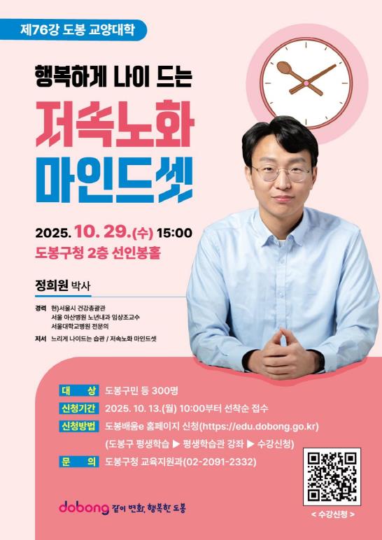| ▲ 도봉구, 정희원 박사 초청 ‘저속노화 마인드셋’ 특강 홍보 포스터 |