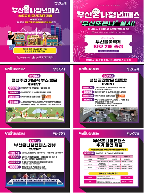 이번 이벤트는 9월부터 11월까지 ▲제30회 부산국제영화제(BIFF)(9.17.~9.26.) ▲페스티벌 시월(9.21.~10.3.) ▲부산불꽃축제(11.15.) ▲지스타 2025(11.13.~11.16.) 등 국내외 청년들이 집중적으로 찾는 굵직한 행사를 맞이해 기획됐다.