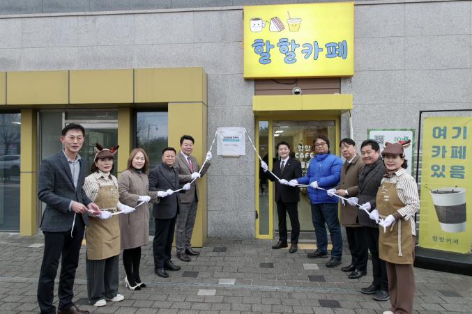 | ▲ 참여카페 100호점 현판 제막 행사 |