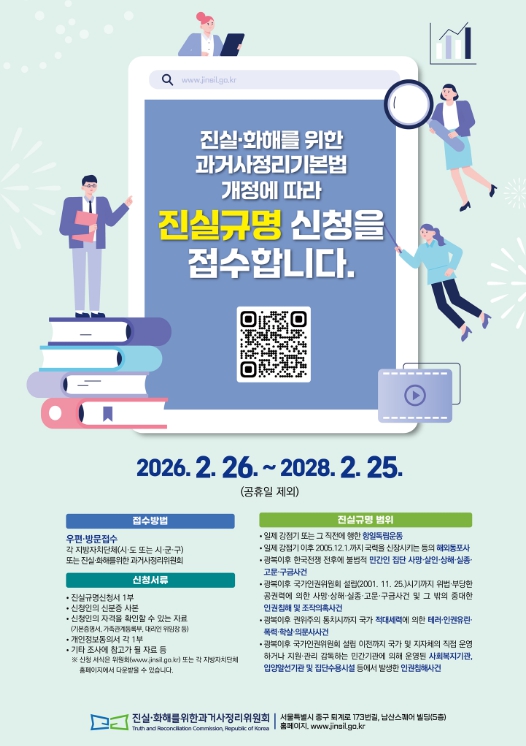 [파이낸셜경제=김지훈 기자] 예천군은 26일부터 제3기 진실·화해를 위한 과거사정리위원회 출범에 따라, 2028년 2월 25일까지 2년간 과거사 진실규명 신청을 받는다고 밝혔다.