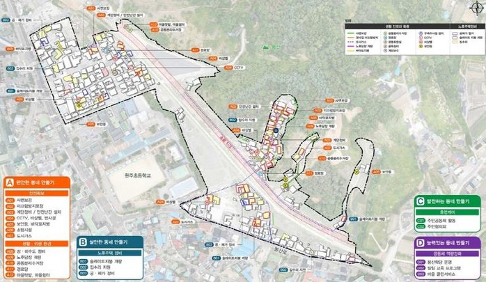 원주시는 지난해부터 봉산동 15통과 17통 일대를 대상으로 도시 취약지역 생활여건 개조사업을 추진하고 있으며, 해당 지역 범위 내에서 민관협력형 노후주택 개선사업을 (사)한국해비타트와 협력해 진행하고 있다.