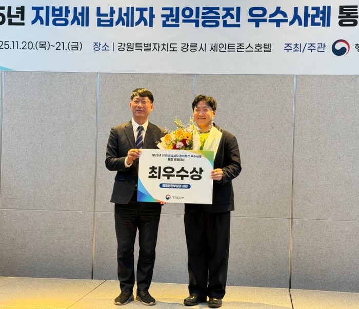 [파이낸셜경제=조성환 기자] 강릉시는 지난 20일부터 21일까지 행정안전부가 주최한 ‘2025년 납세자 권익증진 우수사례 통합 발표대회’에서 최우수상을 수상했다.