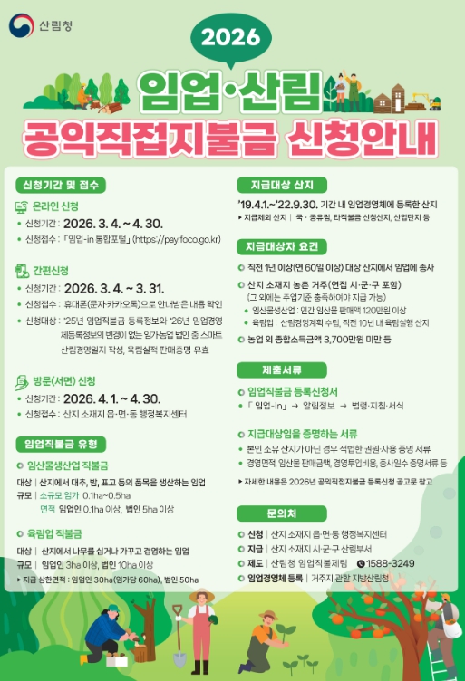| ▲ 2026년 임업·산림 공익직접지불금 접수 |
