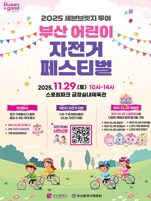 [파이낸셜경제=박영진 기자] 부산시는 오는 11월 29일 오전 11시 스포원파크 금정실내체육관에서 2025 세븐브릿지 투어 연계 '부산 어린이 자전거 페스티벌'을 개최한다고 밝혔다.