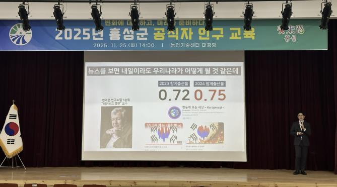 [파이낸셜경제=김영란 기자] 홍성군은 지난 25일 농업기술센터 대강당에서 전 직원을 대상으로 ‘2025년 홍성군 직원 인구교육’을 실시하고, 인구감소에 대응하기 위한 공직사회의 인식 제고와 정책 역량 강화를 다졌다고 밝혔다.
