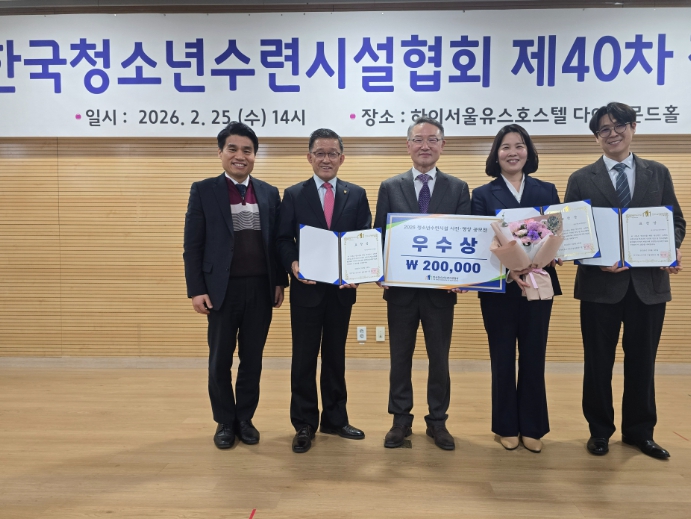 이재연 센터장은 “이번 협회장 표창은 청소년과 직원, 지역사회의 협력이 함께 만든 결과”라며 “앞으로도 청소년이 안전하고 주체적으로 성장할 수 있는 전문 청소년수련시설로서 역할을 더욱 강화해 나가겠다.”고 밝혔다.