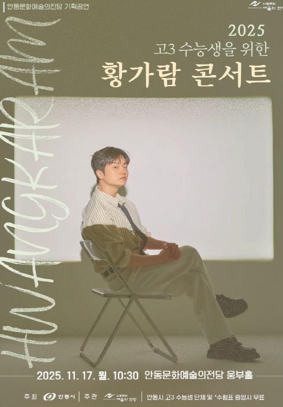 [파이낸셜경제=김지훈 기자] 안동문화예술의전당은 2026학년도 대학수학능력시험을 마친 고3 수험생들을 위로하고 격려하기 위한 공연으로, 황가람 콘서트를 마련했다.