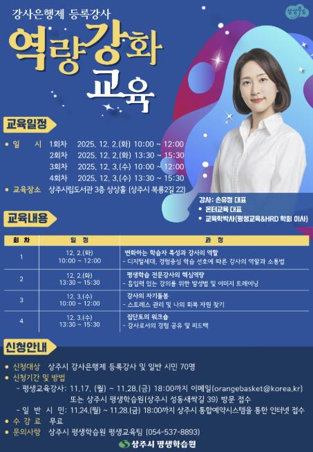 | ▲ 상주시, 2025년 강사은행제 등록강사 역량강화 교육 수강생 모집 |