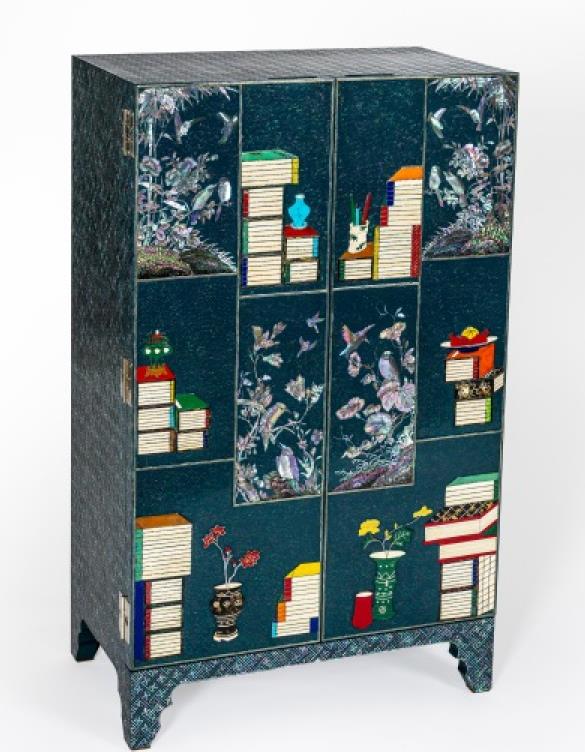올해 대상에는 조선 후기의 책가도를 주제로 자개와 상아, 대모 등을 활용해 새로운 도안을 표현한 김종민 작가의 ‘백무늬 책가도장’이 선정됐다.