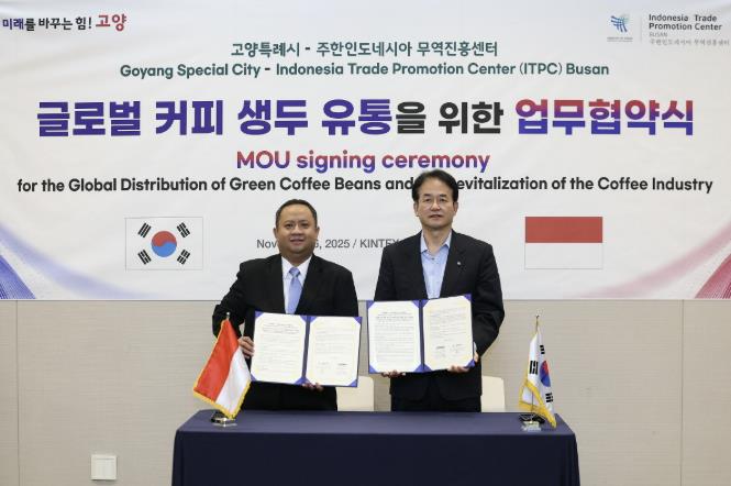 [파이낸셜경제=김영란 기자] 고양특례시는 지난 6일, ‘2025 카페·베이커리페어 시즌2’가 열리고 있는 킨텍스에서 주한인도네시아 무역진흥센터(ITPC 부산)와 ‘글로벌 커피 생두 유통 협력 협약’을 체결했다.