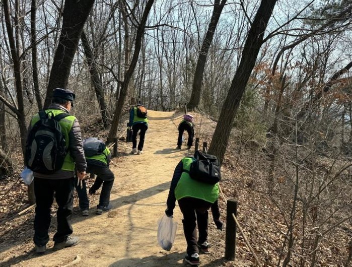 | ▲ 북한산둘레길 지킴이 사업 참여자들이 환경정비를 하고 있다. |