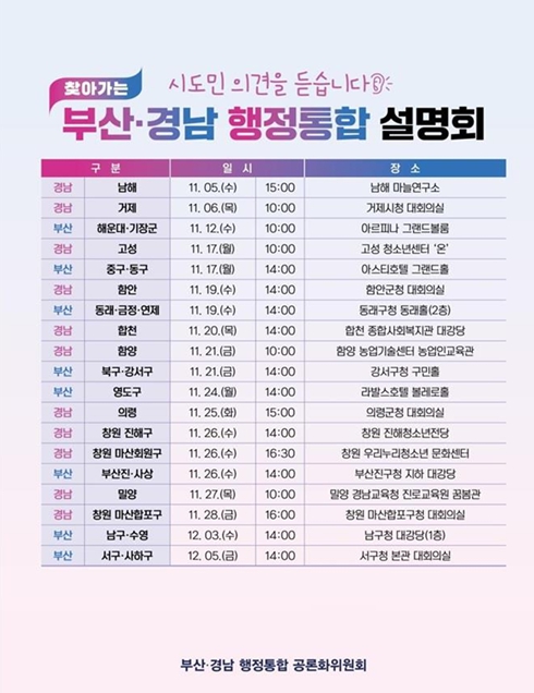 | ▲ 부산·경남 행정통합 설명회 전체 일정 |